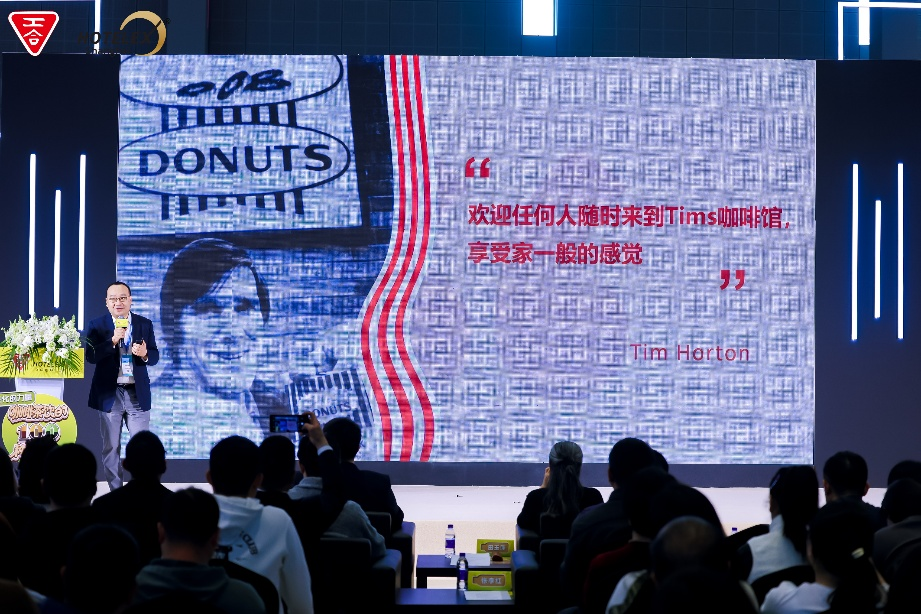 Tims天好中国是全球知名咖啡连锁品牌,入华后高速发展,现已成为国内头部连锁咖啡品牌之一,全国门店规模超2000家,会员体系庞大,在咖啡+暖食场景构建上具备行业标杆地位。Tims天好中国CFO李东以《“咖啡+”的想象力,Tims重塑品牌半径》为题分享,介绍品牌以贝果打造核心大单品,累计销量超8000万个,通过全时段产品组合提升客单价与复购率,暖食占比持续提升,特殊渠道加盟模型1.5年回本,为国际品牌本土化提供可复制增长路径。